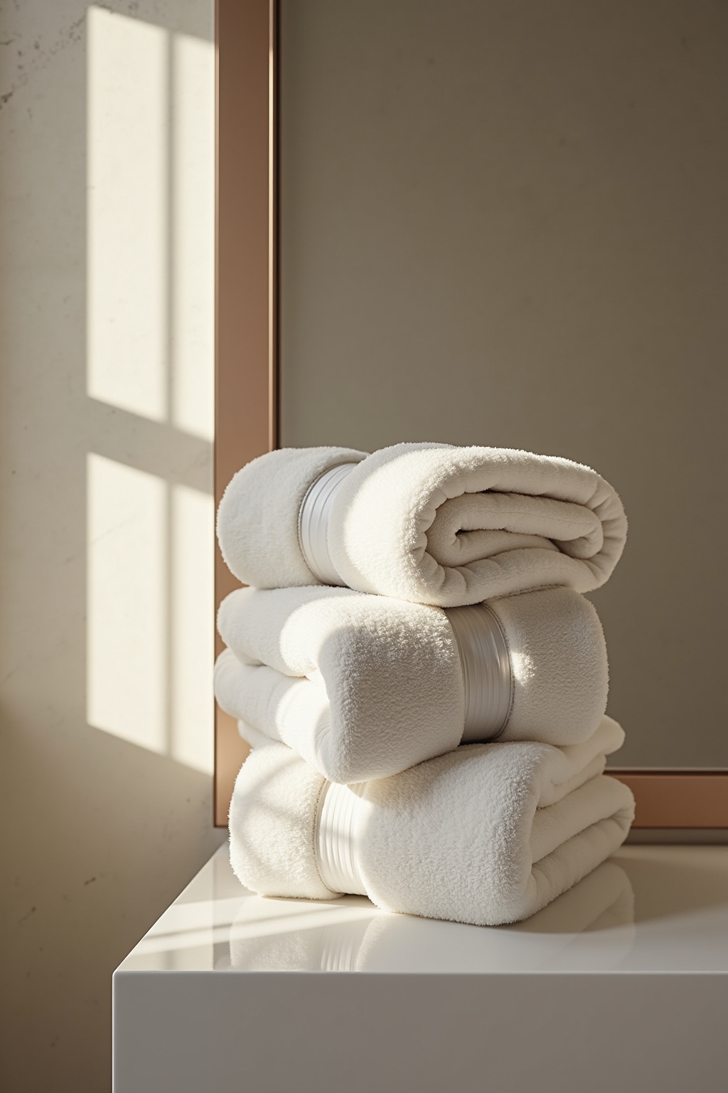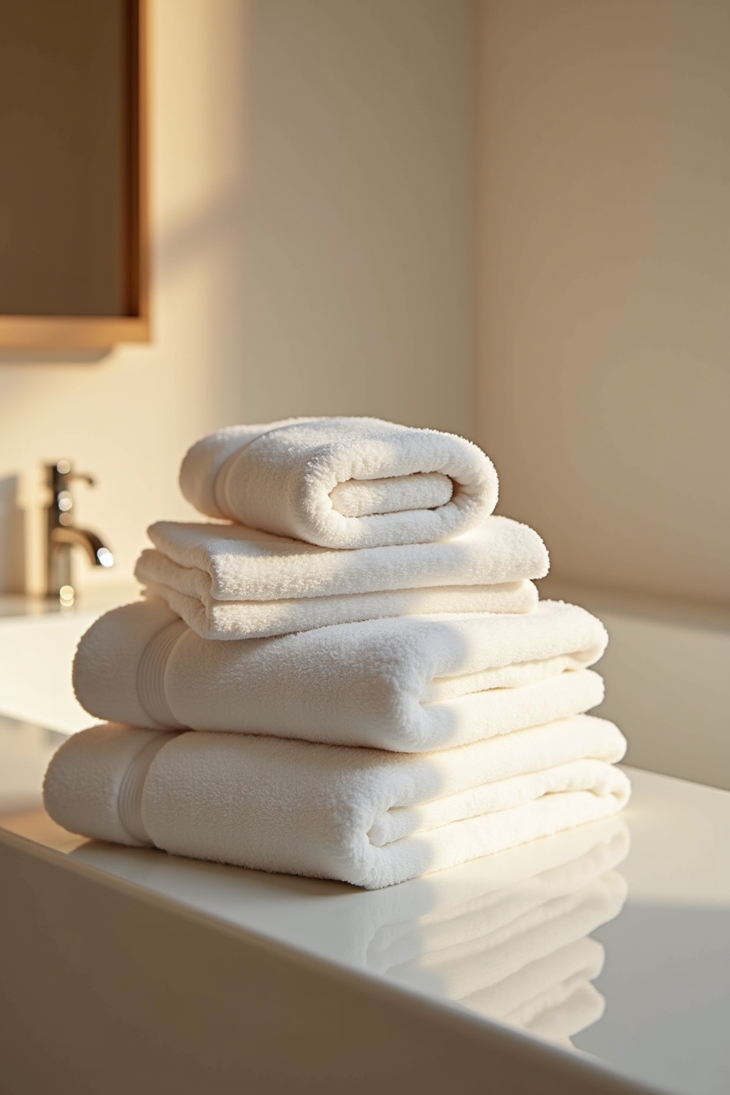 🛁 Material: Die besten Handtücher bestehen aus ägyptischer oder türkischer Baumwolle – sie sind besonders weich und langlebig.
